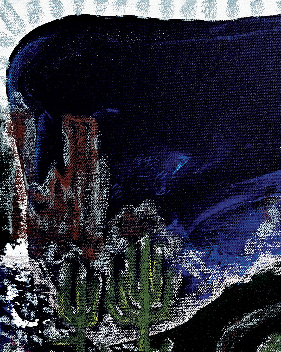 With expressive texture and a moody palette, this artwork evokes stories of resilience, solitude, and strength in silence.
